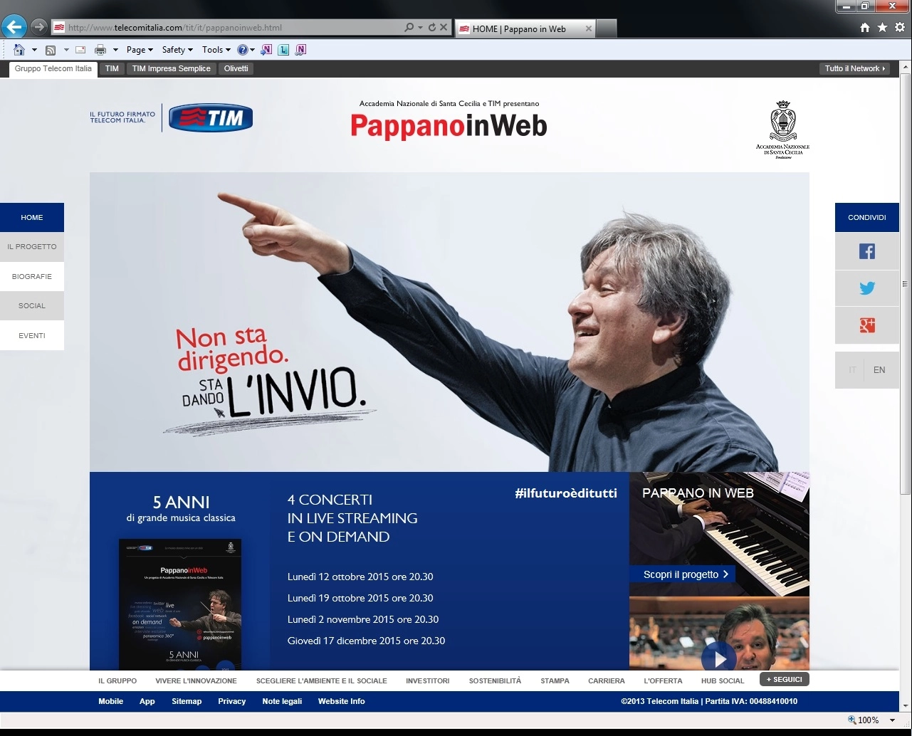 Nel biennio 2020-2021 è editor e sound director della stagione 2020/2021 per le dirette streaming e recording dell’Orchestra di Santa Cecilia.